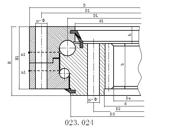 雙排球式回轉(zhuǎn)支承具有三個座圈,鋼球和隔離塊可直接排入上下滾道,根據(jù)受力狀況,安排了上下兩排直徑不同的鋼球。這種開式裝配非常方便,上下圓弧滾道的承載角都為90°,能承受很大的軸向力和傾翻力矩。當徑向力大于0.1倍的軸向力時滾道須特殊設(shè)計。雙排球式回轉(zhuǎn)支承的軸向、徑向尺寸都比較大,結(jié)構(gòu)緊固。特別適用于要求中等以上直徑的塔式起重機,汽車起重機等裝卸機械上。